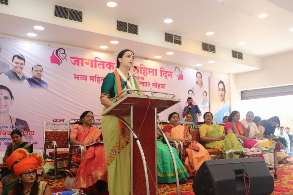 वर्धा : आपण जागतिक महिला दिन साजरा करीत आहोत, पंरतु आपल्या महिला खरच सक्षम झाल्या आहे का, प्रत्येक महिलांमध्ये गुणवत्ता असते त्याचा उपयोग समाजातील इतर महिलाना होईल यासाठी प्रयत्न करने गरजेचे आहे. आपला समाज झपाट्याने बदलत आहे, देशाच्या विकासाचा प्रवास गतिमान करायचा असेल, तर मुलगा-मुलगी हा भेद नष्ट करून त्यांना शिक्षणाची संधी उपलब्ध करून दिली पाहिजे. कारण एका मोठ्या वर्गाकडे दुर्लक्ष करून कोणतेही राष्ट्र प्रगतीच्या मार्गावर जाऊ शकत नाही. महिलांनी विकासात सहभागी होण्यासाठी त्यांना लहानपनापासून मुले-मुली समान आहे ही शिकवन देणे आवश्यक आहे. शासनाच्या विविध योजनेचा लाभ इतर महिलांना कसा होईल यासाठी पुढाकार घेऊन केन्द्र व राज्य सरकारच्या योजना तळागाळातील महिलापंर्यत पोहोचवण्याचे कार्य महिलांनी करावे, असे प्रतिपादन भाजपा महिला मोर्चा प्रदेशाध्यक्ष चित्रा वाघ यांनी केले.