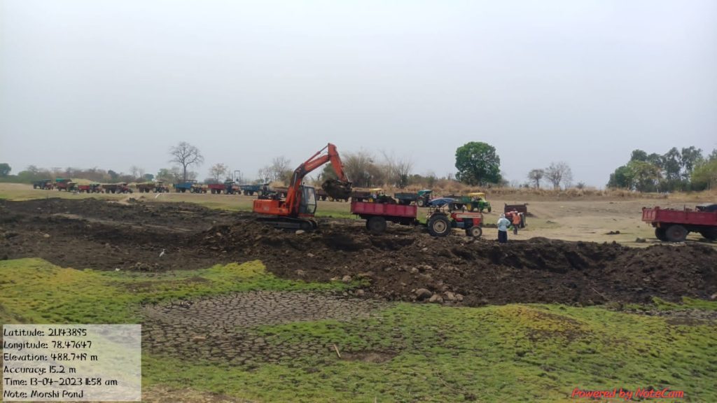 कारंजा (घाडगे) तालुक्यातील सार्शी-मोर्शी ग्रामपंचायत अंतर्गत एक तलाव आहे. या तलावाच्या पाण्याचा सार्शी-मोर्शीसह हेटीकुंडी, ठाणेगाव व खरसखांडा या गावांना आणि येथील शेतकऱ्यांना फायदा होतो. या तलावातून आताही शेतकरी सिंचनाकरिता पाण्याची उचल करतात. या तलावात गाळ साचल्याने पाण्याची साठवणूक क्षमता कमी झाली आहे. परिणामी उन्हाळ्यामध्ये शेतकऱ्यांना सिंचनाकरिता तसेच गुरांकरिता पुरसे पाणी उपलब्ध होत नाही. त्यामुळे सार्शी-मोर्शी येथील नागरिकांच्या मागणीनुसार दहा टक्के लोकसहभागातून जमनालाल बजाज सेवा ट्रस्टने या तलावातील गाळ काढण्याच्या कामाला सुरुवात केली आहे. या कार्याच्या शुभारंभाप्रसंगी माजी जिल्हा परिषद अध्यक्षा सरिता गाखरे, जमनालाल बजाज सेवा ट्रस्टचे मुख्य कार्यकारी अधिकारी संजय भार्गव, विजय गाखरे, मोर्शीचे सरपंच नामदेवराव देवासे, खरसखांड्याचे माजी सरपंच विकास नासरे, जीवन चरडे, दादाराव दुपारे, अशोक गोहते, दिनेश ढोबळे, देवेंद्रा नारसे, जमनालाल बजाज सेवा ट्रस्टचे राजेंद्र खर्च, प्रफुल्ल बनसोड व त्यांचे सहकारी उपस्थित होते.