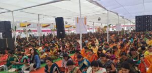 वर्धा : जागतिक पारायण दिनाच्या निमित्ताने वर्ध्यात गजानन भक्तांची मांदियाळी दिसून आली. वर्ध्यातील सर्कस ग्राउंड वर बनवलेल्या मोठ्या मंडपामध्ये जवळपास चार हजार सहाशे गजानन भक्त पारायणाला बसलेत. यामध्ये महिलांची संख्या कमालीची दिसून आली, गेल्या आठ वर्षापासून जागतिक पारायण दिन सोहळा हा वर्ध्यात उत्साहात पार पाडला जातो. येथे अपंग वयोवृध्द यांच्यासाठी सुद्धा बसण्याची व्यवस्था करण्यात आलीय. स्वयंसेवकांनी उत्स्फूर्तपणे मोठे सेवेचे योगदान दिले. विविध कार्यक्रमाचे आयोजन सुद्धा जागतिक पारायण दिनाच्या निमित्ताने वर्धा येथे केले गेले आहे. यावेळी जय गजानन च्या गजराने वर्धा नगरी दुमदुमली होती. अविनाश वंजारी, चंद्रशेखर राठी, अखिलेश गव्हाणे यांच्यासारख्या असंख्य गजानन सेवकांनी सेवा करीत पारायण सोहळ्यात भर टाकली आहे.