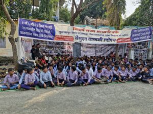 साखळी उपोषणात शाळकरी विद्यार्थी देखील झाले सहभागी