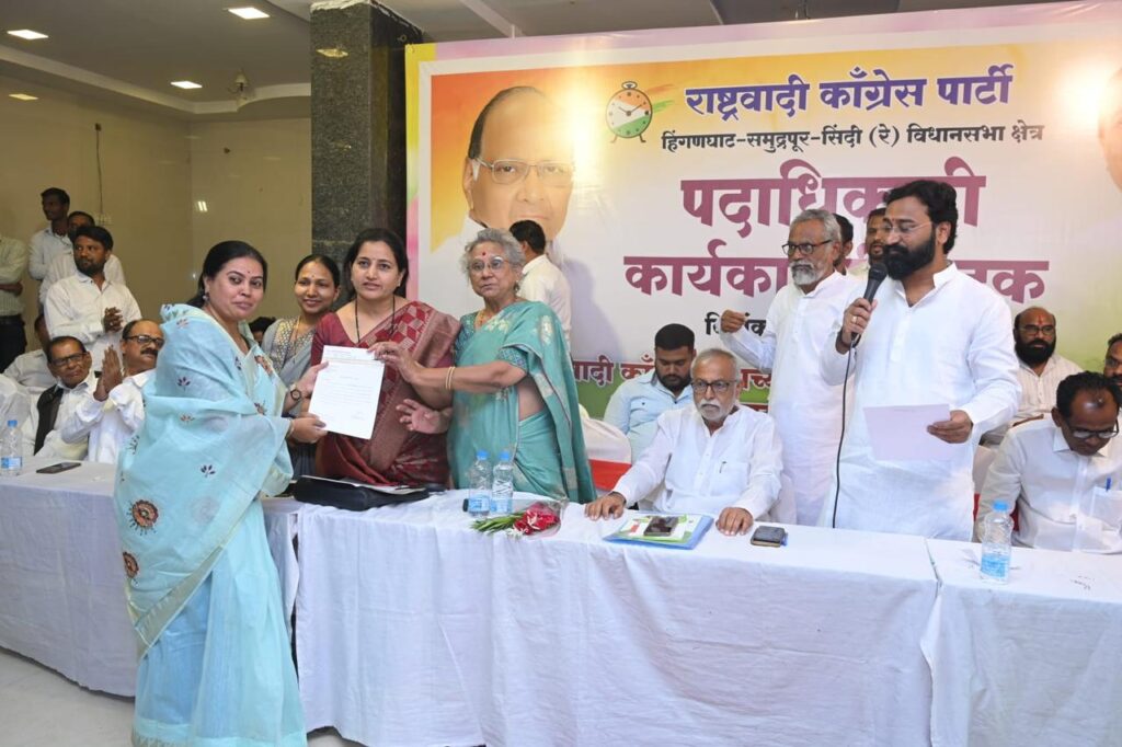 याप्रसंगी सामाजिक न्याय विभागाचे जिल्हा कार्याध्यक्ष प्रलय तेलंग,समुद्रपूर तालुका अध्यक्ष महेश झोटिंग पाटील,माजी जिल्हा परिषद सदस्य अशोक वांदिले,जिल्हा सहसचिव गजानन शेंडे, जिल्हा सरचिटणीस दशरथ ठाकरे, अशोक डगवार,मंगेश गिरडे, सुभाष चौधरी, अमोल बोरकर, गणेश वैरागडे, हिंगणघाट शहराध्यक्ष मृणाल रिठे, शहर कार्याध्यक्ष सिमा तिवारी, विधानसभा अध्यक्ष निता गजबे, जिल्हा सरचिटणीस सुजाता जांभूलकर, समुद्रपूर तालुका संघटक वैशाली लोखंडे, हिंगणघाट तालुका अध्यक्ष शगुप्ता शेख, शहर सचिव अर्चना नांदूरकर आदी पदाधिकारी व कार्यकर्ते मोठया संख्येने उपस्थित होते.