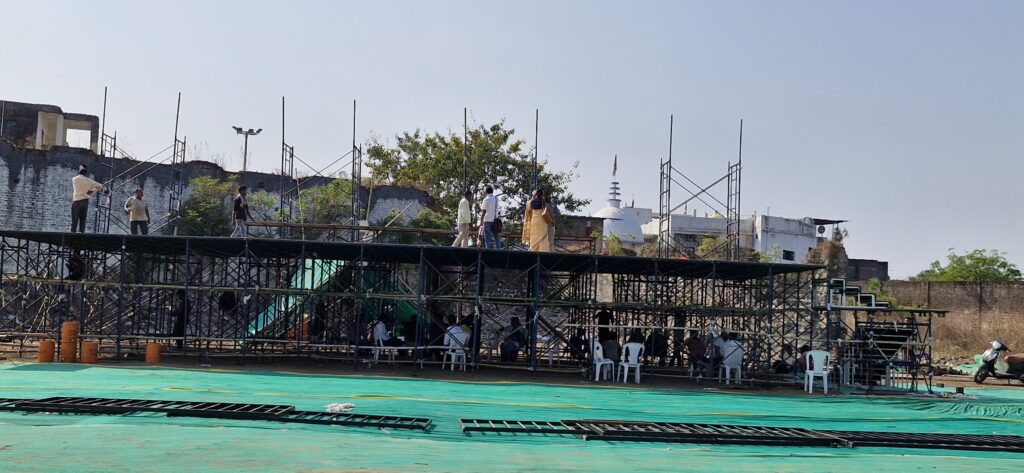 गणेश नगर येथील मैदानावर उभारला जातोय भव्य मंच