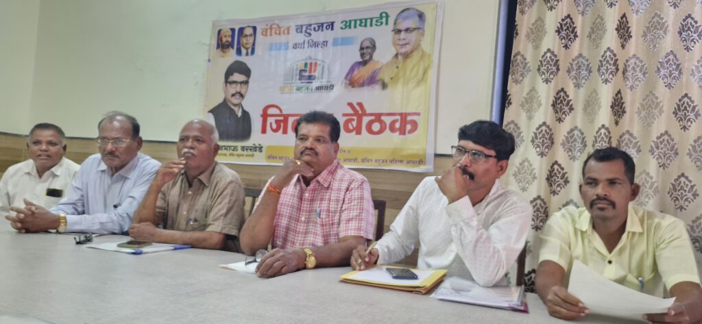 स्थानिक शासकीय विश्रामगृहात वंचित बहुजन आघाडीने पत्रकार परिषद घेतली. यावेळी जिल्हाध्यक्ष मनोज वरखेडे, उपाध्यक्ष डॉ. सुभाष खंडारे, प्रा. राजेंद्र साळुंखे हे उपस्थित होते. महाविकास आघाडी सोबत जाण्याची चर्चा सुरू आहे, पण अद्याप जागा वाटपाचा तिढा सुटलेला नाही. ऐनवेळी जर महाविकास आघाडीत मित्र पक्षसोबत युती झाली नाही तर काय? असा प्रश्न जिल्हा कार्यकारिणी समोर होता. प्राध्यापक राजेंद्र साळुंखे हे अर्थशास्त्र या विषयाचे प्राध्यापक असून ते निवृत्त झाले आहे, सामाजिक प्रश्नांची त्यांना जाण आहे. समाजाशी नाळ आणि वंचितांच्या समस्या निराकरण करण्याचे उमेदवारात सामर्थ्य असले पाहिजे अशी आमची अपेक्षा आहे त्यानुसार आम्ही उमेदवाराची निवड केली आहे असे डॉ. सुभाष खंडारे यांनी पत्रकार परीषदेत सांगितले. या संभाव्य उमेदवाराच्या घोषणेचे पत्र देखील काढण्यात आले आहे. आम्ही आमच्या उमेदवाराचा एबी फॉर्म देखील भरू असे देखील स्पष्ट करण्यात आले आहे. पत्रकारांनी विचारलेल्या प्रश्नांना उत्तरे देताना खंडारे म्हणाले की, बाळासाहेब आंबेडकर यांची आम्ही भेट घेतली, या भेटीत वर्ध्याच्या लोकसभा उमेदवार याबाबत आम्ही चर्चा केली, त्यांनी नावाची घोषणा करण्यासाठी आम्हाला हिरवी झेंडी दिली आहे त्यामुळे आम्ही नाव घोषित करीत आहे असे सांगितले.
